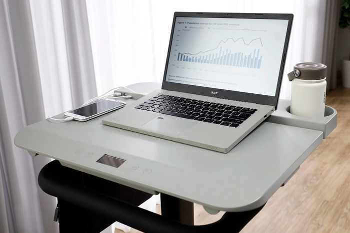 Eine Kombination aus einem Schreibtisch und einem stationären Fahrrad für Benutzer ein „stärkerer nachhaltiger und gesünderer Lebensstil“, sagt Acer. Das eKinekt-Schreibtischfahrrad bietet Ihnen die Möglichkeit, während der Arbeit zu trainieren, indem Sie die kinetische Energie Ihres Pedals nutzen, um den Laptop auf autarke Weise mit Strom zu versorgen. Das integrierte LCD-Display und die begleitende Smartphone-Anwendung bieten mehr Daten und Informationen zu Ihrem Treten sowie Trainingsprogramme und mehr. Das Schreibtischfahrrad ist mit zwei USB-A-Anschlüssen und einem USB-C-Anschluss ausgestattet und bietet Platz für einen Laptop, ein Telefon und ein Getränk in einer integrierten Halterung, wie unten gezeigt.