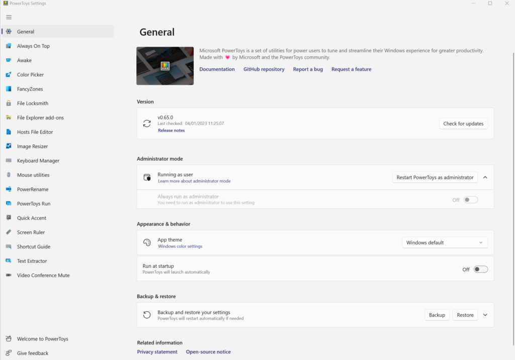 Allgemeine Einstellungsseite in PowerToys (Bildnachweis: Petri/Russell Smith)