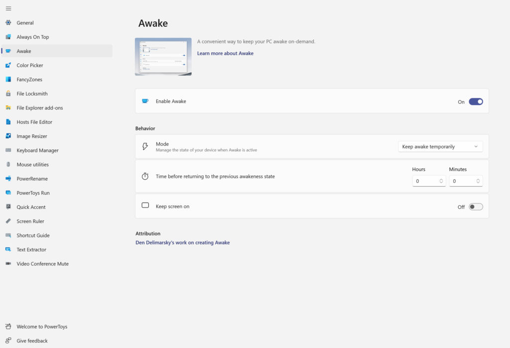 Mit Awake können Sie verhindern, dass Windows in den Ruhezustand versetzt wird ohne die Energieeinstellungen ändern zu müssen. In vielen Fällen blockieren Anwendungen den Windows-Ruhezustand, wenn eine wichtige Aufgabe ausgeführt wird, beispielsweise während einer Teams-Besprechung oder wenn Sie eine PowerPoint-Darstellung präsentieren.