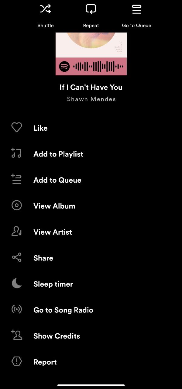 Spotify kann einen einzelnen Song in eine Radio-Playlist umwandeln. Gehe zum Radio findest du, indem du den Song öffnest, auf das Drei-Punkte-Menü neben dem Titel tippst und dann nach unten scrollst. Basierend auf Ihrem Lieblingssong stellt Spotify einen Musikstream zusammen.