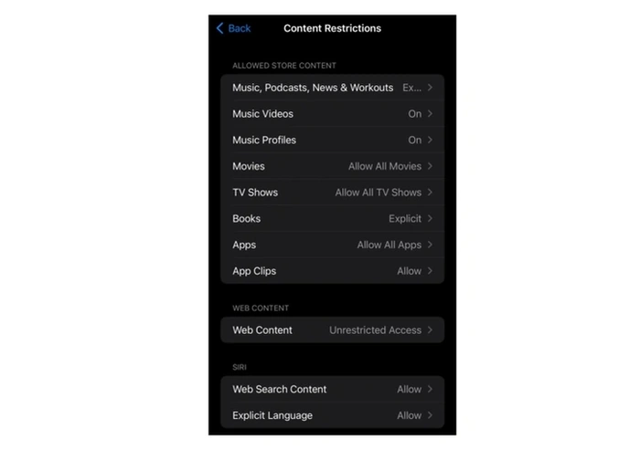 4. Legen Sie die Explicit Language-Regeln für Siri fest, indem Sie sie zulassen oder nicht