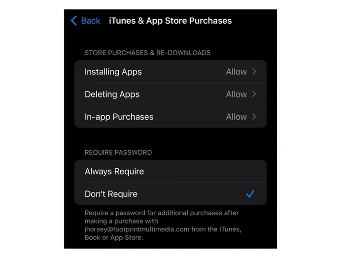 4. Wählen Sie die Option für Käufe im iTunes & App Store