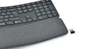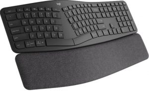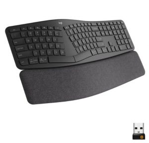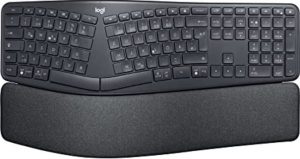 Eine gute ergonomische Tastatur fürs Büro ist die Logitech K860. Ein gebogenes Brett mit negativem Winkel kann nützlich sein, wenn Ihre Handgelenke häufig Schmerzen haben. Außerdem wird das Tippgeräusch auf ein Minimum reduziert, sodass Sie niemanden in der Nähe stören. Die Tastenanordnung kann etwas gewöhnungsbedürftig sein, aber sobald Sie sich daran gewöhnt haben, ist sie sehr effektiv.