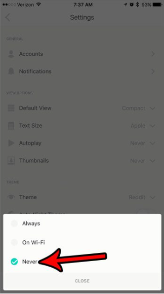 Öffnen Sie Reddit. Tippen Sie auf das Profilsymbol. Tippen Sie auf “Einstellungen”. Tippen Sie auf “Autoplay”. Tippen Sie auf “Nie ”, um die automatische Wiedergabe in Reddit-Videos zu deaktivieren, und Sie sind fertig.