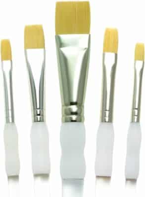 Ausverkauf 872 Rezensionen Royal & Langnickel SG-304 5-teiliges Flachpinsel-Set ALL MEDIA BRUSH SET-SOFT GRIP Gold Taklon ist ideal für Acrylfarben sowie alle Malmedien. Perfekt für Maler aller Erfahrungsstufen! WEICHER GRIFF-Jeder Pinsel verfügt über unseren patentierten, rutschfesten, weichen Gummigriff für zusätzlichen Komfort beim Malen! HALTBARKEIT & STIL-SOFT GRIP-Pinsel verfügen über eine langlebige, hochwertige, nahtlose Aluminiumzwinge und einen durchsichtigen Acrylgriff. QUALITÄTSPINSEL – Diese Pinsel verfügen über synthetische Gold-Taklon-Filamente mit mehreren Durchmessern, die feine Spitzen, Federn und scharfe Kanten erhalten, ideal für alle Malmedien. SET ENTHÄLT – Schattierungspinsel 4, 8, 10, 12, Wash 3/4″