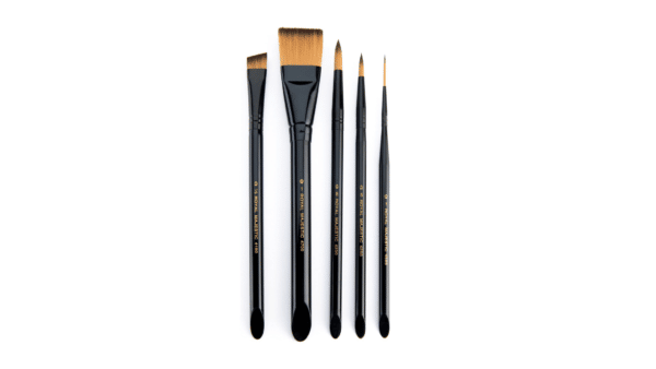 Ein schlankes Design mit einem grauen Griff macht die Bürsten eindrucksvoller. Mit schwarzen Zwingen hat die Bürste feine Taklon-Borsten, die das Abwerfen der Haare aus der Bürste verhindern. Damit können Sie ohne Unterbrechungen arbeiten und Ihre Kunstwerke weiterführen.