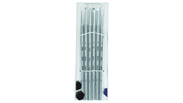 Obwohl das Set nur fünf Pinsel enthält, ist dieses Set effektiv für Acrylarbeiten. Die Pinsel unterscheiden sich in Washing-Form mit 1 Zoll, rund 5, 8, eckig ½ und 1 Script Liner.