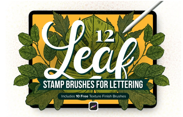 12 Leaf Procreate Stamp Brushes is one of the best options available to add detailed leaves to your art. This is your perfect companion if you don’t know how to draw leaves. This leaf stamp brush for Procreate comes with ten Free Texture Brushes.