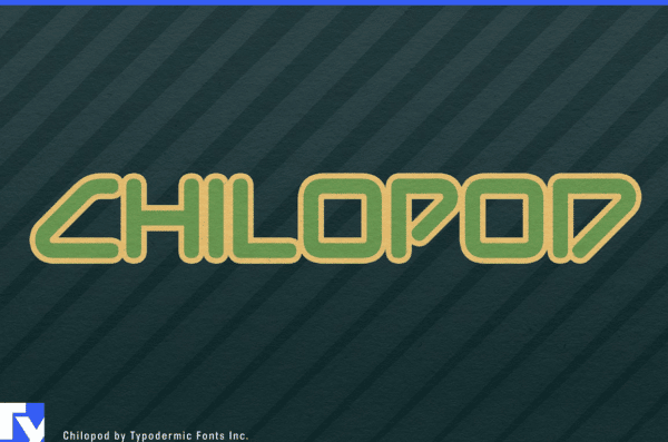 Chilopod ist eine Schreibschrift, die von Kabinettgrafiken für Centipede, ein Atari-Spiel aus den 80er Jahren, inspiriert wurde. Diese Arcade-Schriftart verfügt über OpenType-Funktionen, um atemberaubende Designs zu erstellen. Sie unterstützt mehrere Sprachen, sodass Sie diese Schriftart problemlos in einer Vielzahl von Designs verwenden können.