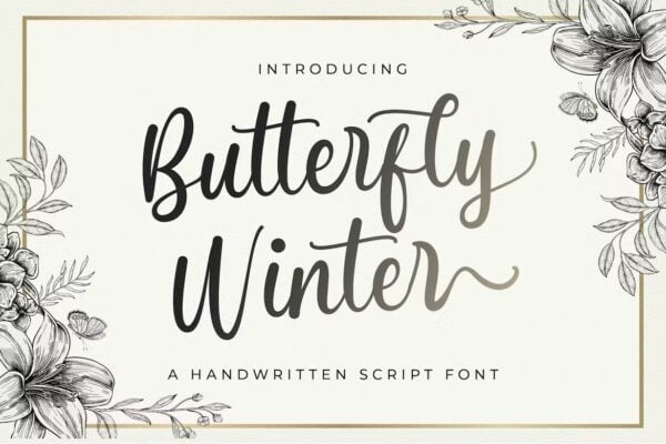 Die Schriftart Butterfly Winter ist eine schöne Schriftart, die gut ausgewogene Zeichen mit einem frei fließenden handschriftlichen Stil enthält. Diese Schmetterlingsschrift eignet sich hervorragend für Weihnachtskarten, Dankeskarten, Einladungen, Filmtitel und mehr.