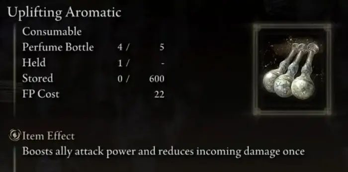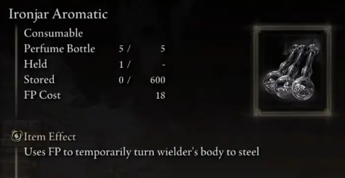 Jetzt sind die wahren unbesungenen Helden der unbenutzten Handwerksgegenstände die Parfümkünste. Im Gegensatz zu den Töpfen, die ziemlich einfach sind. Diese Parfümkünste haben sehr unterschiedliche Wirkungen und können sehr vielseitig sein. Sehen wir uns nun einige der Parfümkünste in Elden Ring an.