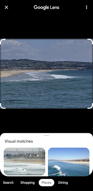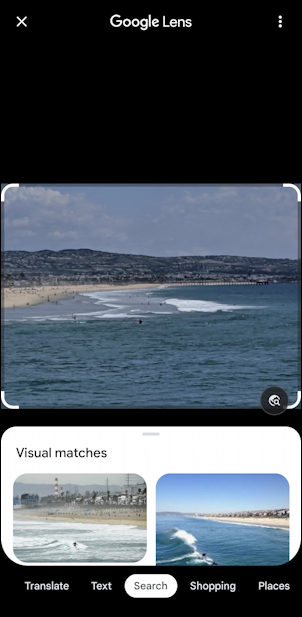 Ihr erster Instinkt könnte sein, Google Lens, leicht zugänglich, indem Sie unten auf die Schaltfläche”Lens“tippen. Überraschenderweise funktioniert es jedoch nicht besonders gut, sondern erkennt es nur als Strand und Wasser: