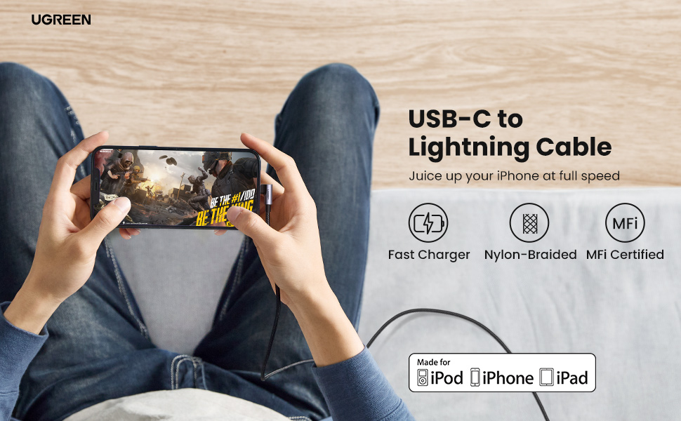 Manchmal möchten Sie vielleicht (oder brauchen). ) ein Lightning-Kabel, das in einem 90-Grad-Winkel positioniert ist. Mit diesem USB-C-zu-Lightning-Kabel von UGREEN bekommen Sie genau das. Das USB-C-Ende ist wie Ihre herkömmlichen Ladekabel, während das Lightning-Ladegerät um 90 Grad abgewinkelt ist, sodass Sie das Ladegerät bei Bedarf auch auf engstem Raum unterbringen können.