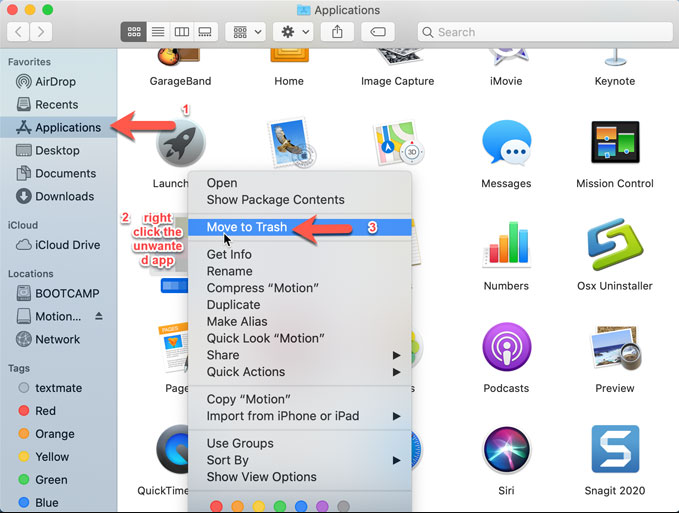 Begeben Sie sich im zweiten Schritt zur Seite Finder und klicken Sie auf “Anwendungen”. Suchen Sie als Nächstes nach TurboTax-Symbol, klicken Sie mit der rechten Maustaste und wählen Sie „In den Papierkorb verschieben.“