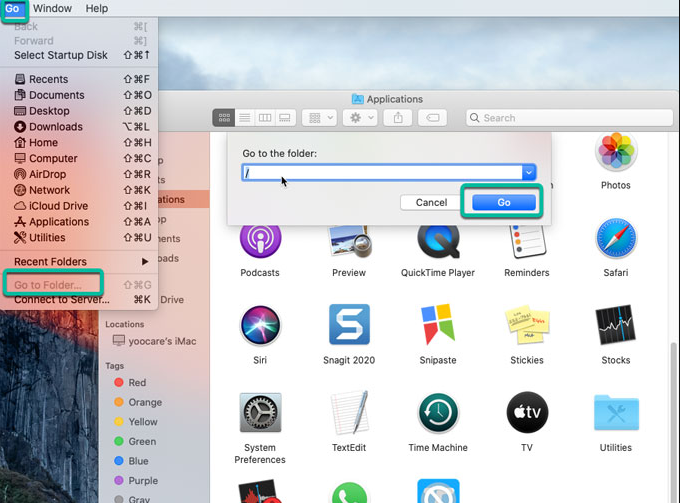 Öffnen Sie im nächsten Schritt Finder erneut, klicken Sie auf „Los“ und wählen Sie „Gehe zum Ordner.“ Geben Sie den Pfadnamen von „TurboTax“ in das Feld ein und klicken Sie auf „Los“. Wählen Sie alle übrig gebliebenen Dateien aus und löschen Sie sie, um alle Spuren von TurboTax auf Ihrem Mac zu entfernen.