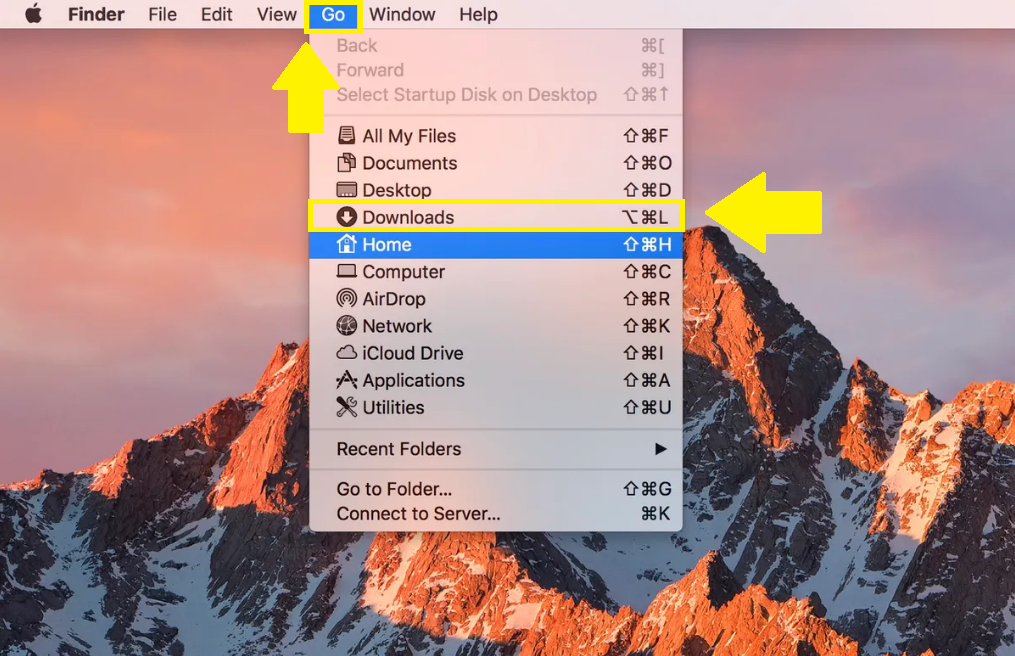 Öffnen Sie den Finder. Klicken Sie auf „Los“. Wählen Sie „Downloads.“