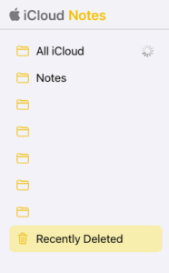 Navigieren Sie in Notes zu Ihrem Ordner „Kürzlich gelöscht“ auf der linken Seite des Bildschirms. Klicken Sie darauf und finden Sie die Notiz, die Sie wiederherstellen möchten.