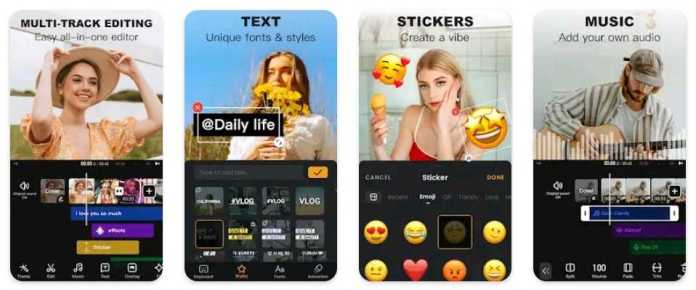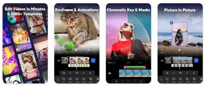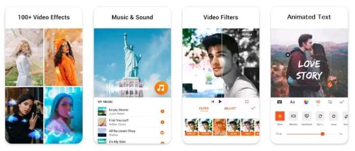 VivaVideo bietet viele Funktionen, von denen die meisten nur mit einem Premium-In-App-Abonnement zugänglich sind. Sie erhalten Zugriff auf hochwertige Videovorlagen mit erstaunlichen Übergängen und magischen Effekten. Die VivaVideo-App sollte Ihre Anlaufstelle sein, wenn Sie sehr kurze Videos erstellen. Mit dieser App können Sie auch Fotos und Musiktexte zu bearbeiteten Videos hinzufügen.