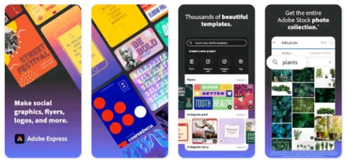 Adobe Express ist eine Grafikdesign-und Fotobearbeitungs-App für Mobilgeräte. Diese App konzentriert sich auf alle Grafiken, ob Video oder Bild. Sie erhalten Zugriff auf viele Effekte, Hintergründe, Schriftarten und Wasserzeichen. Trotzdem kann diese App auch als Animations-App für Android-Geräte dienen.