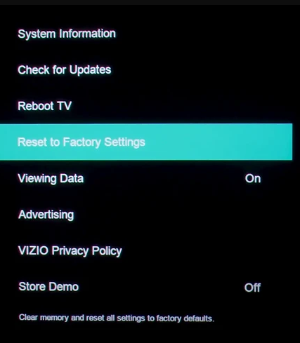 Methode Nr. 3: Zurücksetzen des VIZIO Smart TV auf die Werkseinstellungen