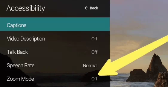 Nachdem Sie die Sprachausgabe auf Ihrem VIZIO Smart TV ausgeschaltet haben, aktivieren Sie den Zoom-Modus, um die Schriftgröße der Beschreibung und der Untertitel auf dem Bildschirm mit zu erhöhen diese Schritte.