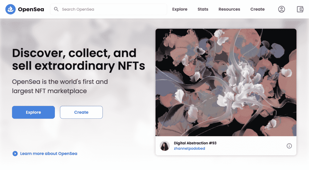 Der weltweit größte Peer-to-Peer-NFT-Handelsmarktplatz ist OpenSea. Darüber hinaus gibt es keinen Überprüfungsprozess. Sie können Ihre Arbeit sofort hochladen und zum Verkauf anbieten. Aus diesem Grund empfehlen wir Ihnen, Ihre erste Kryptokunst auf diesem Marktplatz zu erstellen.