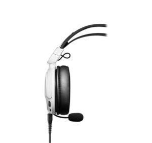 Der Lautstärkeregler und Stummschalttaste, die sich beide in der Nähe des 35-mm-AUX-Kabels befinden, sind die einzigen Bedienelemente an der linken Ohrmuschel. Zusätzlich verfügt die linke Ohrmuschel über ein flexibles, abnehmbares Galgenmikrofon. Aufgrund seiner extremen Leichtigkeit, die großartig ist, kann sich das Headset gelegentlich schwach anfühlen, insbesondere über dem Kopfbügel.