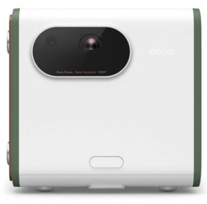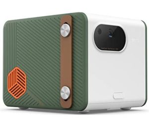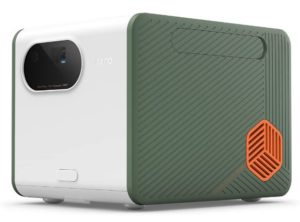 Der BenQ GS50 ist ein tragbarer Projektor im Lunchbox-Format mit einer Auflösung von 1080p, einer Akkulaufzeit von zweieinhalb Stunden und einigen überraschend leistungsstarken Lautsprechern. Grüne Seitenteile mit gummierten Beschichtungen und ein Kunstledergriff runden das trendige Erscheinungsbild ab. Der BenQ-Projektor wird mit einem integrierten Streaming-Stick geliefert, der verwendet oder über HDMI verbunden werden kann. Wenn Sie sich nicht in der Nähe einer Steckdose befinden, können Sie den Projektor auch über einen USB-Akku mit Strom versorgen.