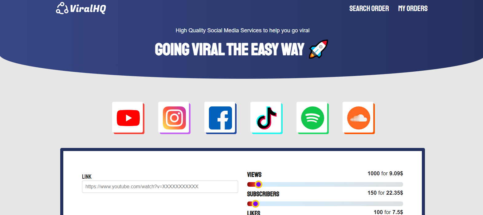 Im letzten von die Top 5 der besten Websites, um YouTube-Abonnenten und-Ansichten zu kaufen, kommt Viral HQ mit seinen zahlreichen Paketen und erschwinglichen Preisen auf den Teller. Sie ermöglichen es Ihnen, Ihr Social-Media-Konto schnell viral zu machen, indem Sie eines ihrer Pakete auswählen. Sie müssen einen Link zu Ihrem Social-Media-Konto hinzufügen, den Service auswählen, dafür bezahlen und schon können Sie die Bestellung erhalten. Setzen Sie sich unbedingt mit ihnen in Verbindung, um das beste Angebot für das Wachstum Ihres YouTube-Kanals zu erhalten.