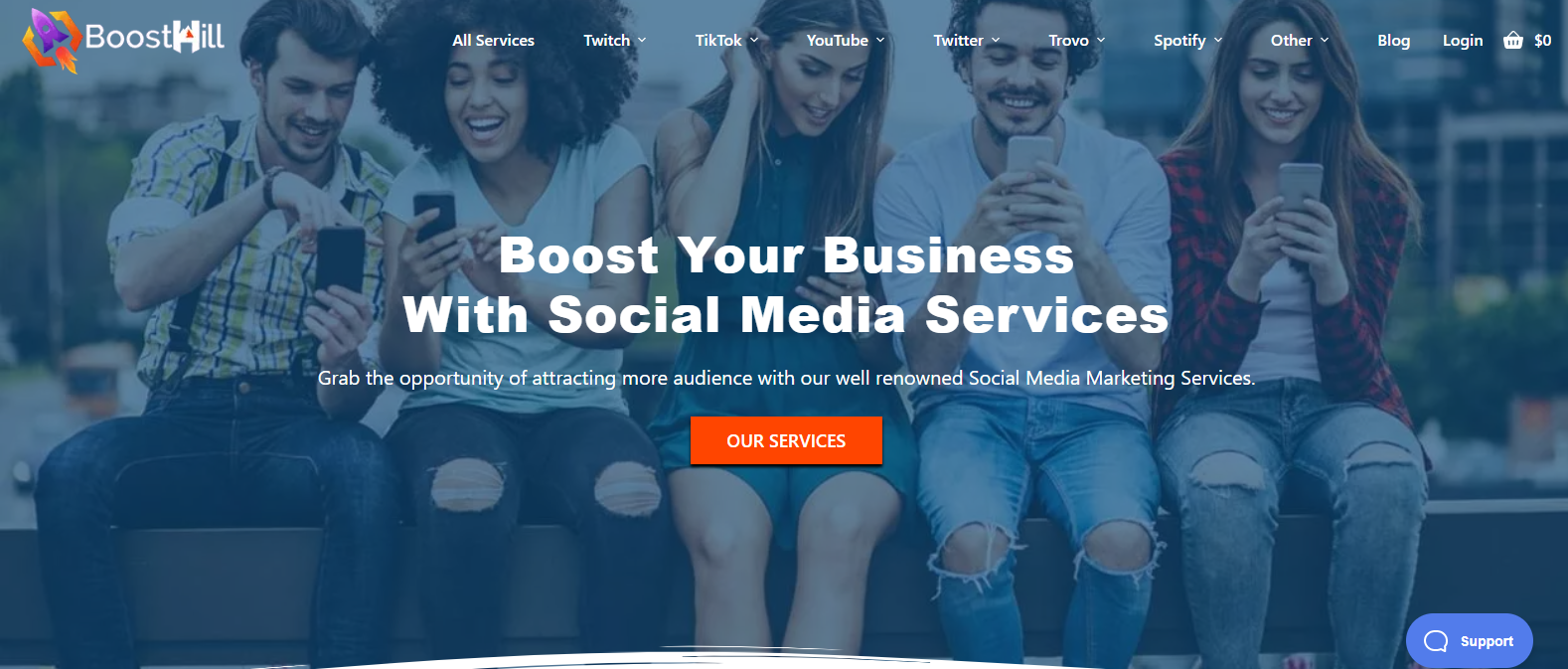 BoostHill steht ganz oben auf der Liste der Websites, auf denen Sie YouTube-Abonnenten kaufen können, Aufrufe, Wiedergabestunden und Aufrufdienste für YouTube-Kurzfilme. Sie bieten 100 % echte und aktive YouTube-Abonnenten und nicht löschbare Aufrufe für Ihre Inhalte, damit Sie sie für andere sichtbarer machen und mehr organische YouTube-Nutzer für Ihren Kanal gewinnen können. BoostHill bietet auch andere Social-Media-Werbedienste wie Twitch-Zuschauer, TikTok-Follower, Twitter-Follower, Gvideo-Ansichten, Clubhouse und Trovo. Sie haben Millionen von YouTubern mit ihren großartigen Diensten gedient.