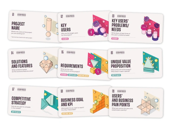 „BAD steht für Business Aware Design und ist ein Tool, das Ihnen beim Designen hilft, während Sie es behalten ein Geschäftsansatz im Auge. BAD besteht aus 41 Karten und einem Handbuch und ist das Werkzeug, mit dem Sie sich einen Gesamtüberblick über jedes Projekt verschaffen und verstehen können, wie Sie Ihren Platz auf dem Markt finden und Werte schaffen können. Die Verwendung von BAD ist sehr einfach: Sie platzieren die Karten einfach dort, wo es Ihnen passt – Tische, Böden, Türen oder jede andere verfügbare Oberfläche – und füllen dann die Struktur mit Post-it aus.“