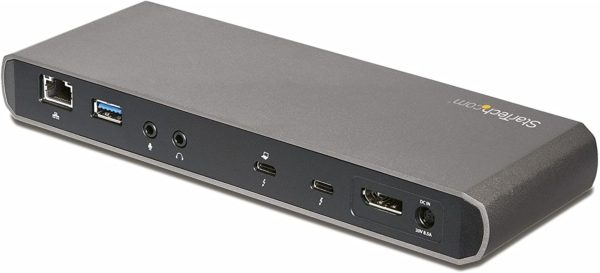 298 Reviews StarTech.com Thunderbolt 3 Dock-Dual Monitor 4K 60Hz Laptop Docking Station with DisplayPort-85W… THUNDERBOLT 3 CERTIFIED DOCK: 40Gbps video/data bandwidth, dual 4K 60Hz DP & TB3 (USB-C) video outputs, 85W PD, USB 3.0 5 Gbps Hub w/2x USB-A (1 Front Fast-Charging) & 1x USB-C, GbE, 3.5mm audio/mic85W POWER DELIVERY: This Thunderbolt 3 Docking Station will power and charge laptops & ultrabooks such as MacBook Pro 13 & 16, MacBook Air, HP, Lenovo ThinkPad, & Dell XPS using macOS, WindowsEASY TO USE: TB3 Dock w/auto drivers; incl. Thunderbolt 3 host cable & USB-C to DisplayPort cable for 2nd DP monitor; extended dual display support on MacBook Pro/Air with Intel processor & single…FLEXIBLE THUNDERBOLT 3 PORT: Thunderbolt 3 port replicator with a downstream TB3 port that supports 3 modes of operation: a second monitor, daisychain TB3 peripherals, or connect USB Type-C…DAISYCHAIN UP TO 5 THUNDERBOLT 3 DEVICES: Connect additional TB3 devices to this TB3 dock including monitors, external hard drive bays, card readers, or an external GPU; using the downstream TB3 port.