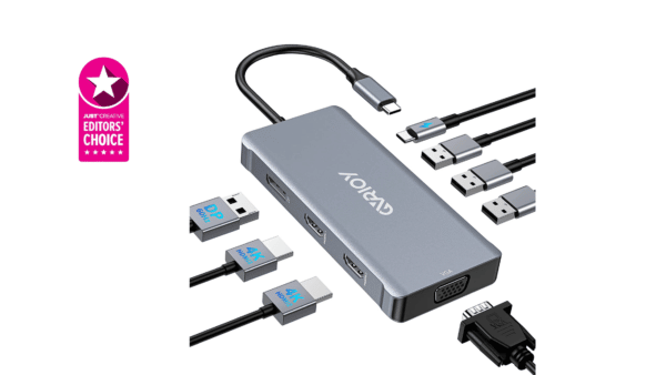 Wenn Sie nach einer kostengünstigen Dockingstation suchen, ist GVRIOY die ideale Wahl. Es verfügt über einen DisplayPort-Anschluss und zwei HDMI-Anschlüsse, die 4K-High-Definition-Videos ausgeben können. Dank der 8-in-1-USB-C-Adapterfunktion haben Sie eine praktische All-in-One-Option zum Anschließen von Peripheriegeräten. Sie können es einfach anschließen und ohne zusätzliche Geräte verwenden.