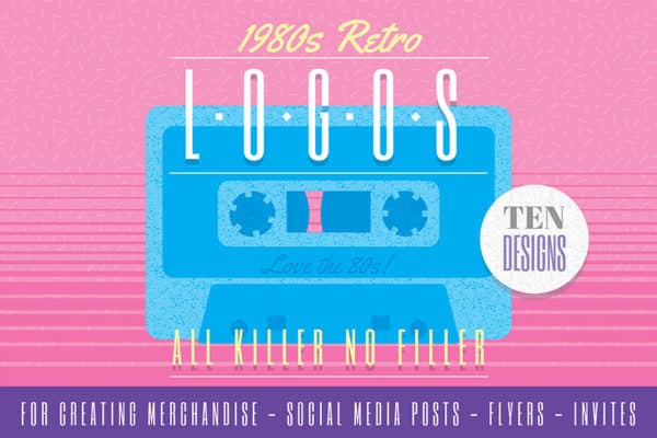 Wenn die Leute an die 1980er denken, denken sie an die Musik, die Kleidung und die Fernsehsendungen. Mit dem 1980er-Retro-Logo-Design-Kit von Wing’s Art and Design können Sie Ihr inneres Miami Vice mit einer Sammlung von 10 vollständig anpassbaren Logos kanalisieren, die von Themen aus den 1980er Jahren inspiriert wurden.