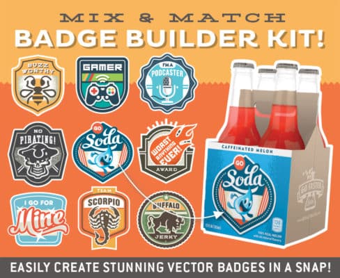 Developed to be a fun and versatile kit, the Magnificent Mix & Match Badges Kit from Go Faster Labs was created for those who need a quick logo or badge for those impatient clients that need results and if you’ve been doing this long enough, you know exactly who we mean. Perfect for use on stickers, pins, patches, labels, invitations and much more.
