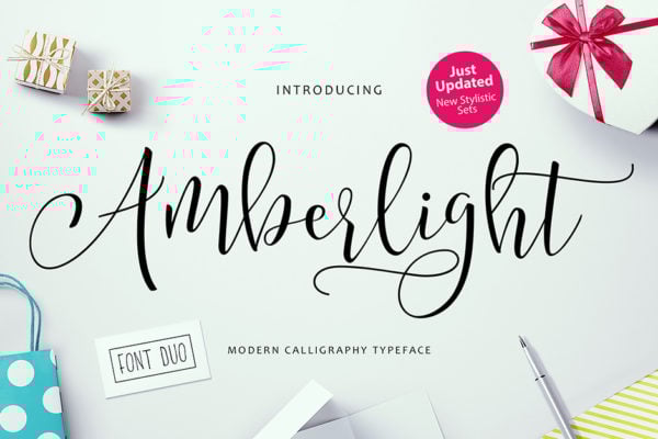 If you’ve been using the same old fonts for your branding projects, it sounds like you might need a new option. The Amberlight Script from Get Studio is a fresh and modern script that has a unique calligraphy-style. It is a perfect choice for invitations, greeting cards, business cards, and any other branding material you can think of.
