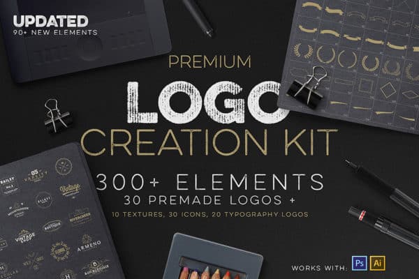 Compatible with both Photoshop and Illustrator, if you’re looking for a quick and easy way to create logos, this kit can get you going.