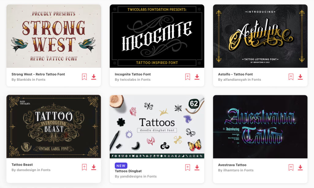 Laden Sie alle Tattoo-Schriftarten für Frauen benötigen Sie und viele andere Designelemente, verfügbar für eine m Einmaliges Abonnement, indem Sie Envato Elements abonnieren. Das Abonnement kostet 16,50 $ pro Monat und gibt Ihnen unbegrenzten Zugriff auf eine riesige und wachsende Bibliothek mit über 50 Millionen Artikeln, die Sie so oft wie nötig herunterladen können (auch Effekt-und Elementpakete)!