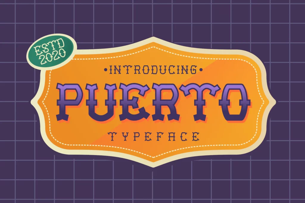 Puerto ist ein verspieltes Font-Bundle mit dekorativen Elementen, was es zu einer großartigen visuellen Lösung für eine Vielzahl von Dingen macht – Tattoo-inspiriert oder nicht. Und wie die meisten Konkurrenten in dieser Kategorie enthält auch dieser nur Großbuchstaben.
