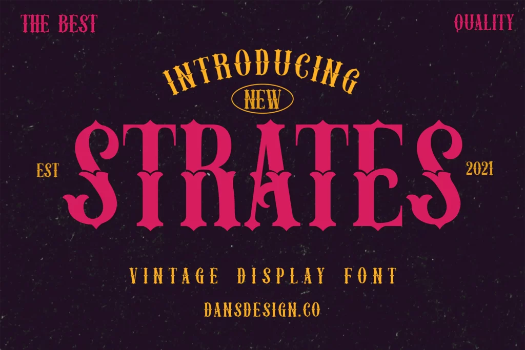 Eine der ästhetisch ansprechenderen Optionen auf der Liste ist STRATES VINTAGE. Mit seinen herzförmigen Kurven im Mittelteil jedes Charakters ist dieser Anwärter perfekt für mehr als nur von Tätowierungen inspirierte Ideen. Von Schlagzeilen und Marketingmaterialien bis hin zu Branding-Bemühungen und kreativen Projekten gibt es viele Dinge, die Sie mit dieser Auswahl machen können.