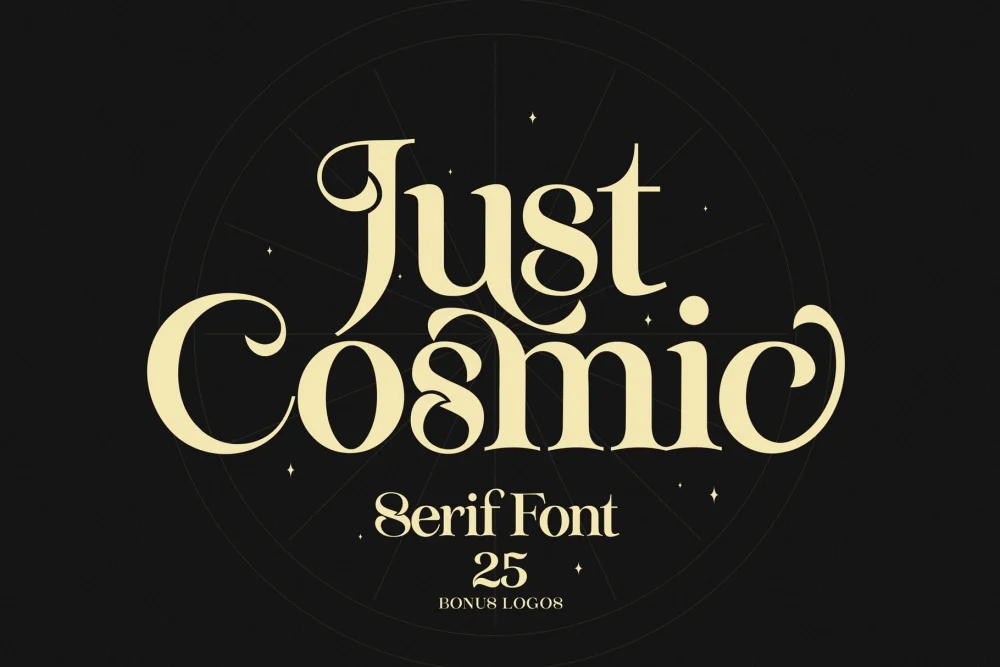 Just Cosmic ist eine elegante Serifenschrift mit wunderschönen Ligaturen und Zierbuchstaben. Dieses geschmackvolle Schriftartenangebot ist perfekt für Ein-Wort-Tattoo-Ideen und bietet Groß-und Kleinbuchstaben, was es zu einer großartigen Option für viele Designs und Projekte macht.