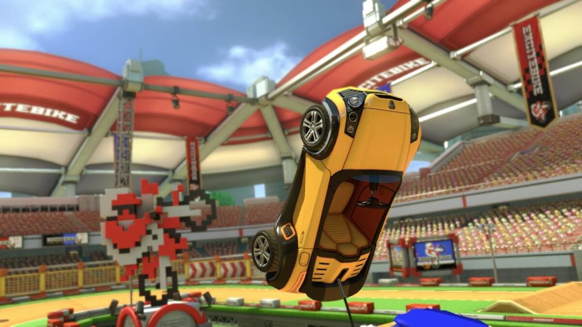 Die Spieler können auch an Geschwindigkeit gewinnen, indem sie mit ihren Fahrzeugen über bestimmte Bereiche auf dem Spielfeld fahren, wodurch sie schnell fahren können Überqueren Sie das Feld, nutzen Sie den zusätzlichen Schwung, um den Ball zu treffen, oder knallen Sie in das Auto eines anderen Spielers, um es zu zerstören. Im letzteren Szenario erscheint das zerstörte Auto bald auf der Seite des Spielfelds seines Teams.