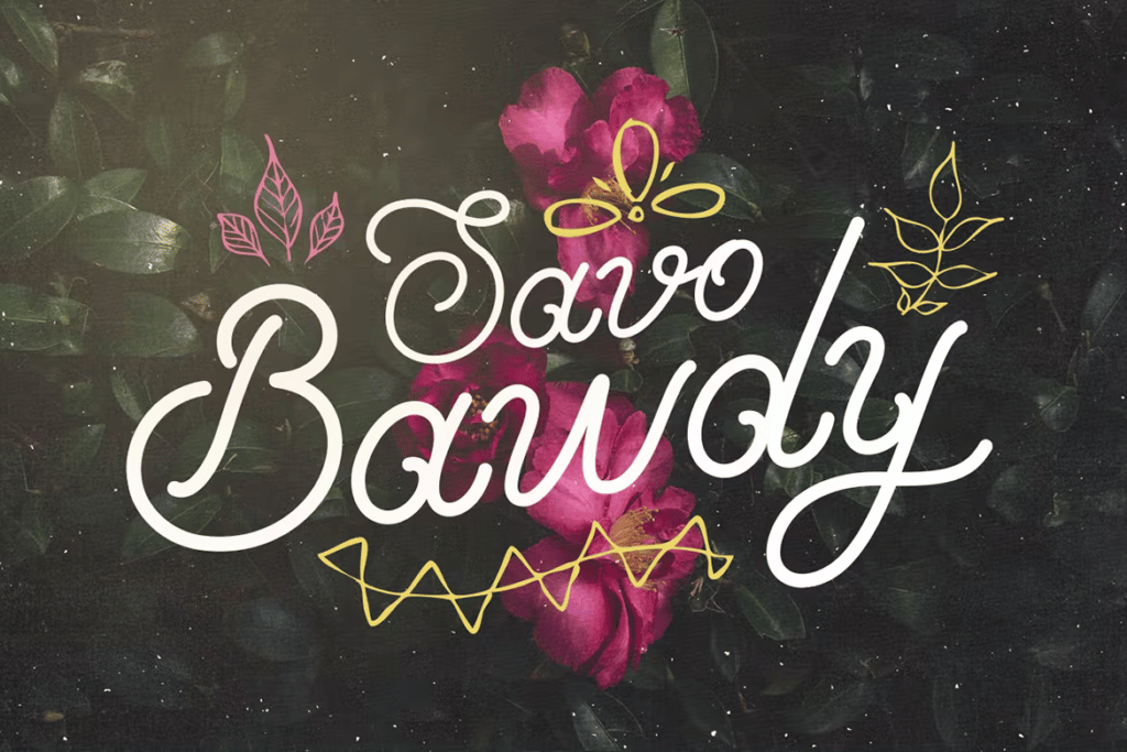 Savo Bawdy ist eine handschriftliche Schreibschrift das eignet sich hervorragend für Überschriften und andere typografische Arbeiten. Die Schriftart enthält Groß-und Kleinbuchstaben, Zahlen und Symbole. Es liegt im TTF-Format vor und enthält eine Textunterstützungsdatei, die Ihnen bei der Verwendung hilft. Insgesamt verleiht die Schriftart Designprojekten ein neues Aussehen.