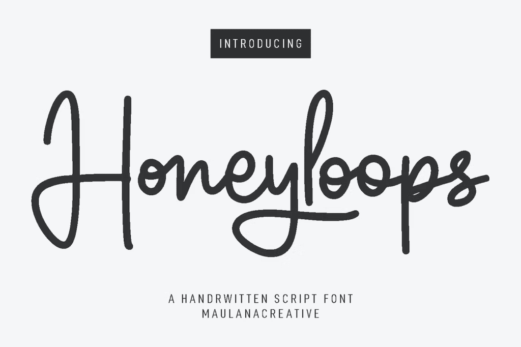 Sie eignet sich für soziale Medien, Buchtitel, Filmtitel, Logodesigns usw. Die kursive Schriftart Honeyloops eignet sich zum Erstellen atemberaubender Schriften Kunstwerk. Sie erhalten diese Schriftart im TTF-und OTF-Format.