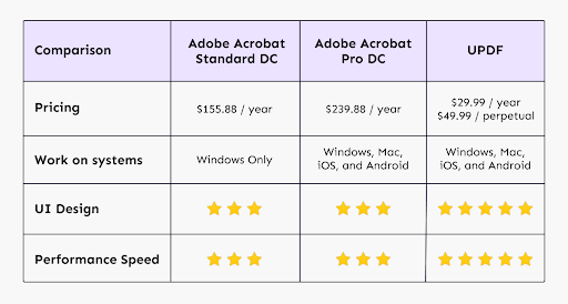 Einer der Hauptunterschiede und Vorteile, die UPDF gegenüber Acrobat hat, ist der Preis. Wir können dies nicht genug betonen, einfach weil Adobe Kunden ein Jahresabonnement ab 155,88 $ pro Jahr berechnet, oder wenn Sie Acrobat Pro DC wollen, müssen Sie bis zu 239,88 $ pro Jahr berappen. Das ist viel Geld, besonders für kleinere Unternehmen, die vielleicht nicht unbedingt so viel mit PDFs arbeiten, aber hin und wieder die Funktionalität von PDF-Editoren nutzen.