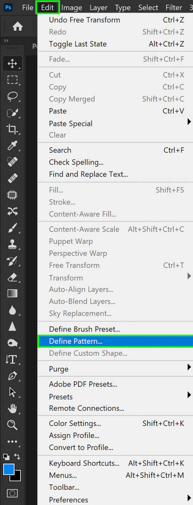 Um unser Mosaik zu verwenden, müssen Sie es als Muster speichern.