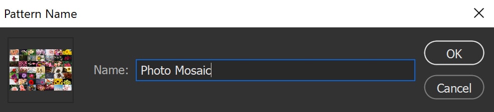 Benennen Sie das Muster wie Sie möchten und klicken Sie auf OK! Ich habe meins Fotomosaik genannt.