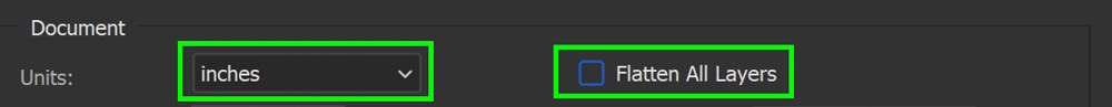 Stellen Sie sicher, dass im Abschnitt Einheiten Zoll angezeigt wird und dass die Option Alle Ebenen glätten deaktiviert ist.