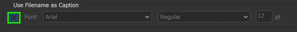 Lassen Sie diese Option im Abschnitt Dateiname als Bildunterschrift verwenden deaktiviert. Der Kontaktabzug sollte keinen Text enthalten.