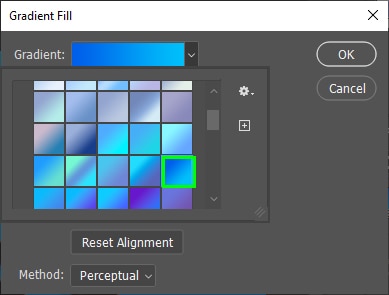 Klicken Sie auf das Dropdown-Menü für den Verlauf das DialogfeldVerlaufsfüllung, um voreingestellte Verlaufsoptionen zu öffnen.